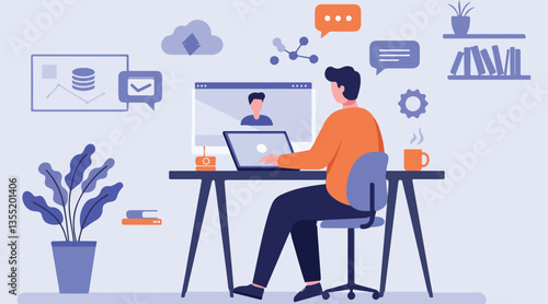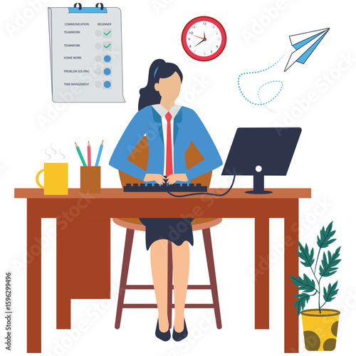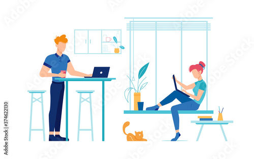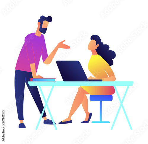 Человек-ученый или лаборант, работающий в научной лаборатории с использованием микроскопа, лабораторной посуды, векторной плоской изолированной иллюстрации. Научное исследование, концепция эксперимента для веб-баннера, страницы веб-сайта.