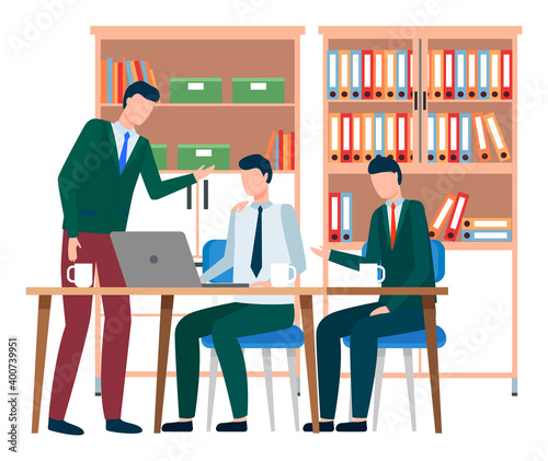 Люди науки, векторная плоская изолированная иллюстрация. Ученые или лаборанты, работающие в научной лаборатории, проводят научный эксперимент, проводят медицинские исследования с использованием лабораторного оборудования, стеклянной посуды.