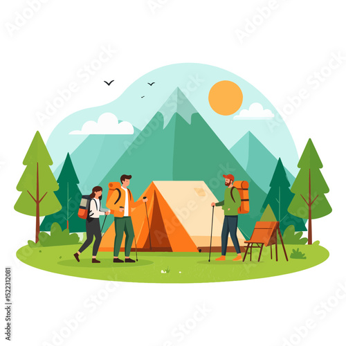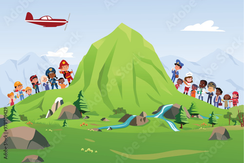 Ученые-вулканологи, изучающие вулкан и вулканическую активность или извержение, плоская векторная иллюстрация. Вулканология.