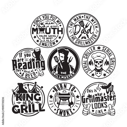 Винтажный логотип для подводного плавания и подводной охоты, значок, набор эмблем, векторная монохромная иллюстрация. Школа глубоководного плавания, клуб, магазин черные этикетки, выделенные на белом фоне. Подводное приключение.