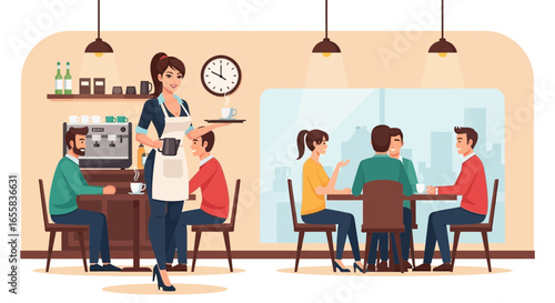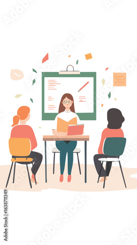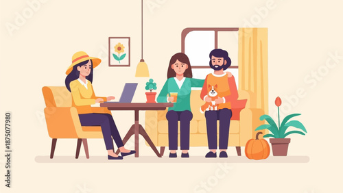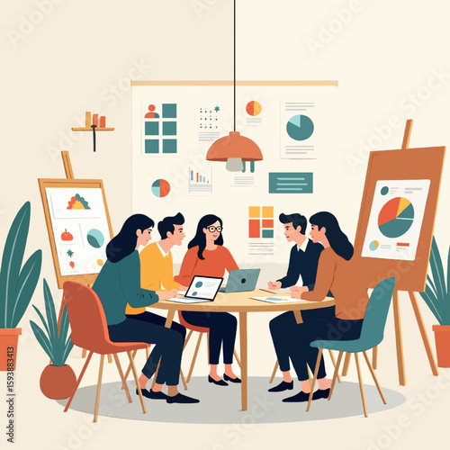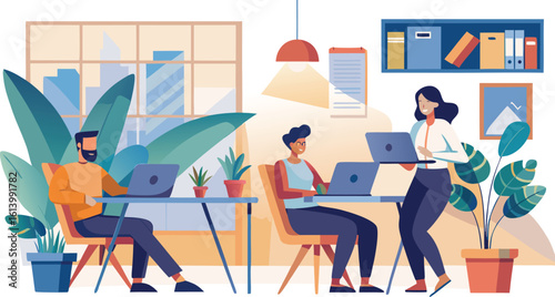 Команда швей на рабочем месте фабрики модной одежды. Женщины, работающие на швейных машинах и снимающие мерки с помощью векторной иллюстрации с лентой