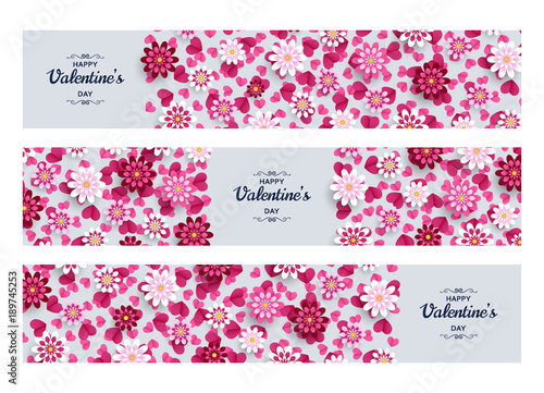 Набор шаблонов горизонтальных баннеров для продвижения сезонной весенней распродажи. Векторный вырезанный из бумаги цветочный фон для плаката, открытки, листовки, ваучера и т.д.