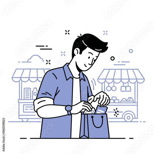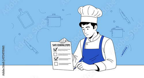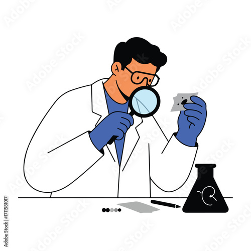 Два микро-персонажа мужского пола надевают медицинскую маску на огромное мужское лицо, векторная плоская иллюстрация. Охрана труда, личное здоровье, защита лица, профилактика и защита от коронавируса Covid-19