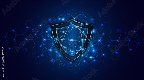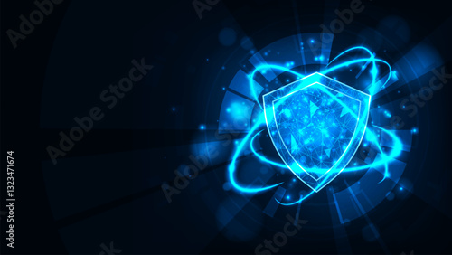 Защитный экран, низкополигональная каркасная сетка, состоящая из точек, линий и форм. Векторная многоугольная иллюстрация в художественном стиле. Кибербезопасность, концепция защиты данных для плаката-баннера.