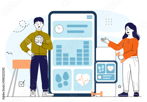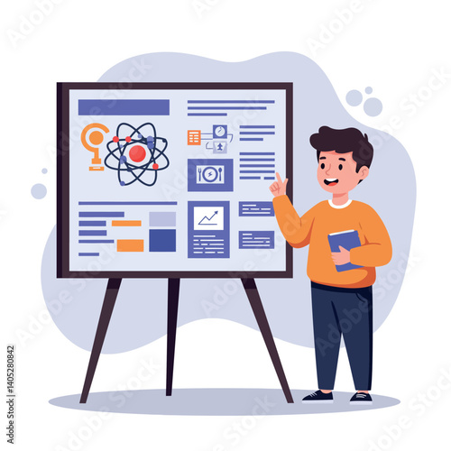 Векторная иллюстрация сервиса самостоятельного заказа. Персонаж мультяшного человека покупает билет с помощью интерактивного pos-терминала info kiosk atm.