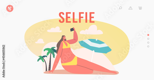 Объявление конкурса селфи в фоторамке, мегафон, наградной кубок и молодая девушка, делающая селфи с помощью мобильного телефона. Векторная иллюстрация дизайна в плоском стиле. Концепция маркетинга в социальных сетях плакат, баннер.