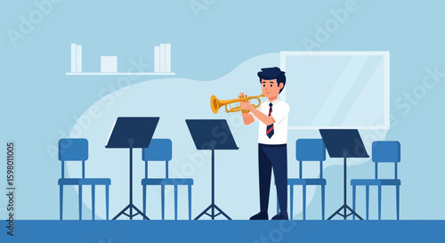 Пожилая пара с музыкальными инструментами, играющая на скрипке и трубе. Векторная иллюстрация концепции хобби дома престарелых. Пожилые люди ведут активный образ жизни.