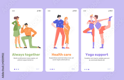 Пожилой мужчина, практикующий спортивную игру в гольф на открытом воздухе с тренером. Экраны мобильных приложений. Векторный шаблон баннера для разработки веб-сайтов и мобильных устройств. Иллюстрация дизайна веб-сайта и пользовательского интерфейса.