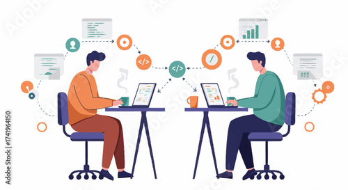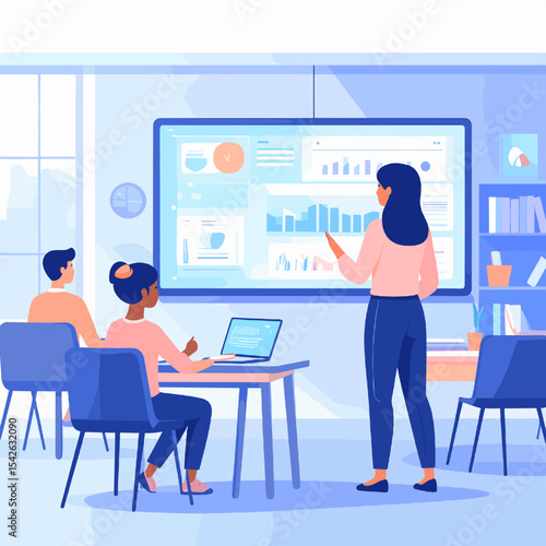 Пожилая женщина занимается серфингом в Сети, общается в социальных сетях с помощью компьютера, плоская векторная иллюстрация. Онлайн-общение. Образ жизни зрелых людей. Счастливого выхода на пенсию. Активность пожилых людей в Интернете.