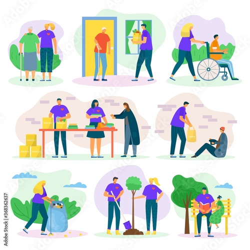 Набор мероприятий для садовых людей с различным специальным оборудованием. Копание, сбор урожая, сбор урожая, скашивание, полив, обрезка. Садоводство, сельское хозяйство. Векторная иллюстрация в плоском дизайне