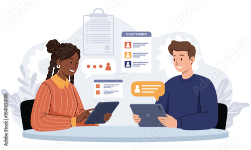 Группа людей, использующих кредитную карту, современные цифровые устройства для онлайн-оплаты, совершения покупок в Интернете, осуществления беспроводного финансового перевода через мобильное банковское приложение, векторная иллюстрация