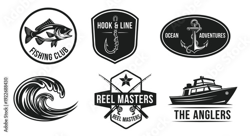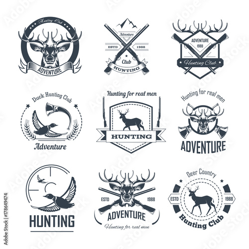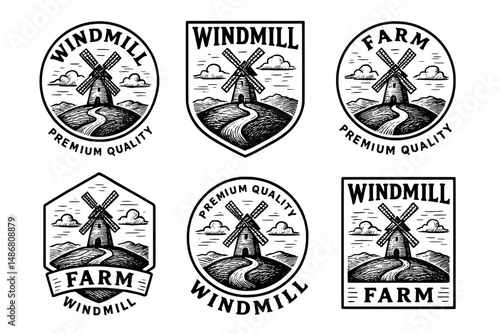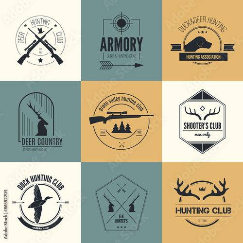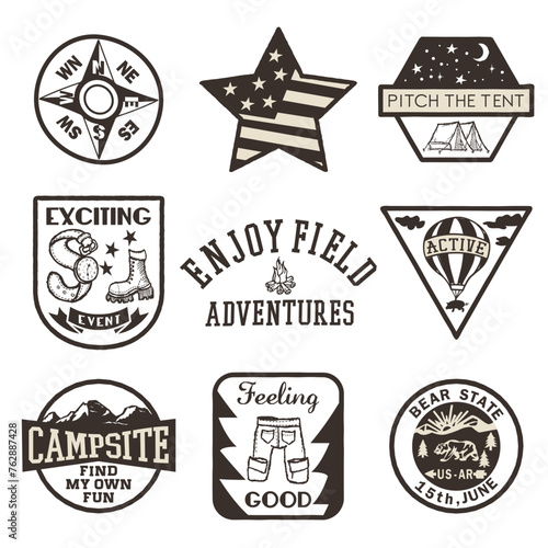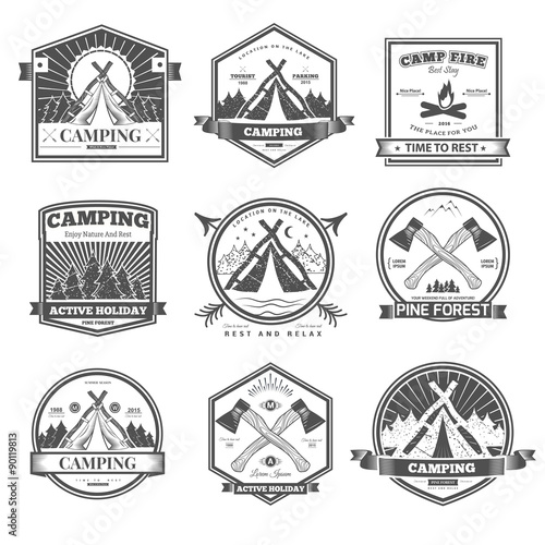 Набор значков и штампов для кальяна. Круглая и прямоугольная форма, ленты, образец текста. Векторное изображение в плоском графическом стиле.
