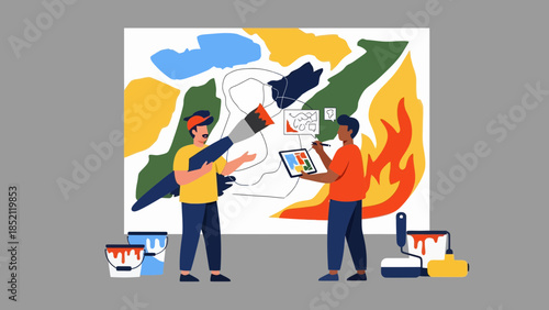 Швея модельер портниха мультяшные персонажи, работающие в швейном цехе с использованием швейной машины измерительная лента манекен векторная плоская изолированная иллюстрация. Швейная мастерская, швейная фабрика, ателье