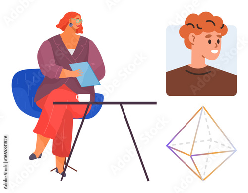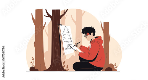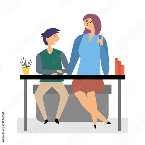 Швея-дизайнер создает выкройку швейной одежды с помощью ножниц, векторная плоская иллюстрация, изолированная на белом фоне. Ателье, швейная фабрика, швейная мастерская, швейное ателье.