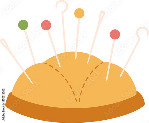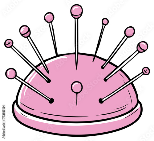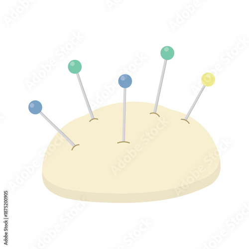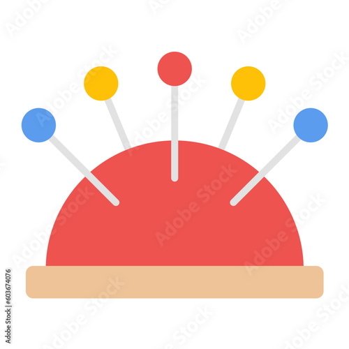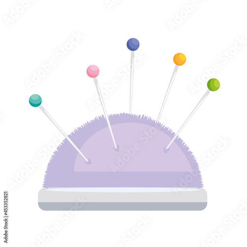 Швейные иглы и булавки в векторной иконке мягкой подушки, изолированной на белом фоне