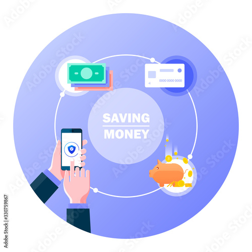 Концепция совместного использования экономики и разумного потребления. Векторная иллюстрация в плоском стиле. Люди экономят деньги и делятся ресурсами.