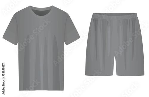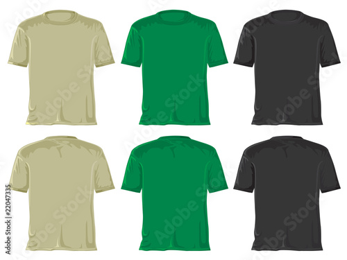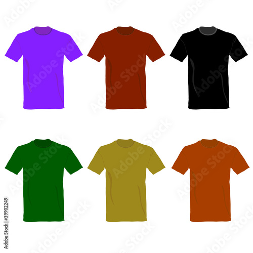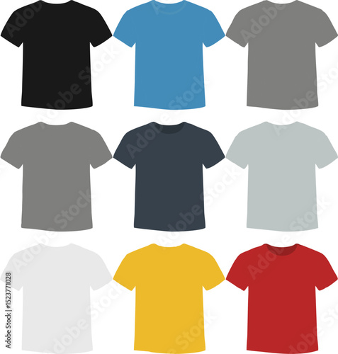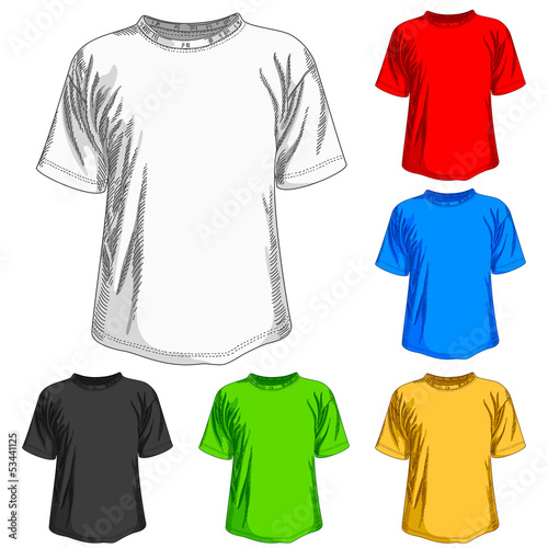 Набор макетов рубашки и футболки, векторная иллюстрация, изолированная на белом фоне. Мужская реалистичная одежда, вид спереди.