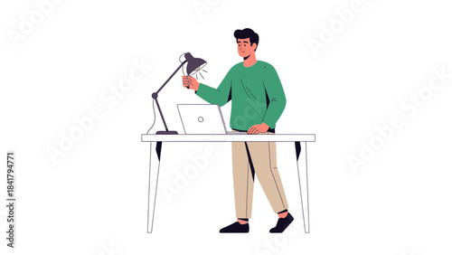 Сапожник, ремонтирующий обувь, векторная иконка, изолированная на белом фоне