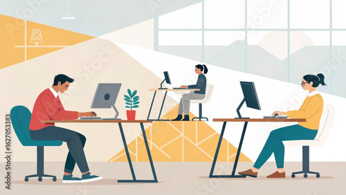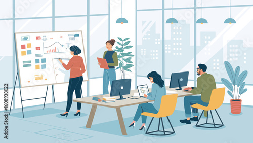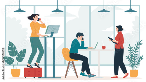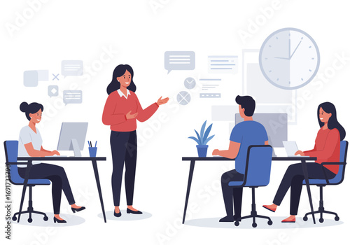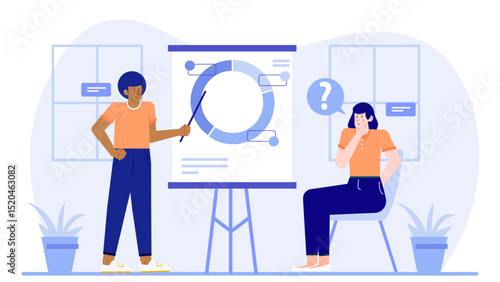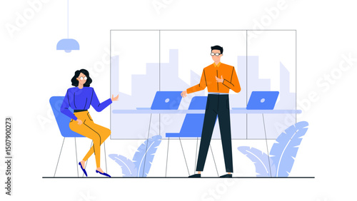 Продавец помогает покупателю выбрать лампу для интерьера спальни, плоская векторная иллюстрация. Концепция розничного бизнеса мебельного магазина.