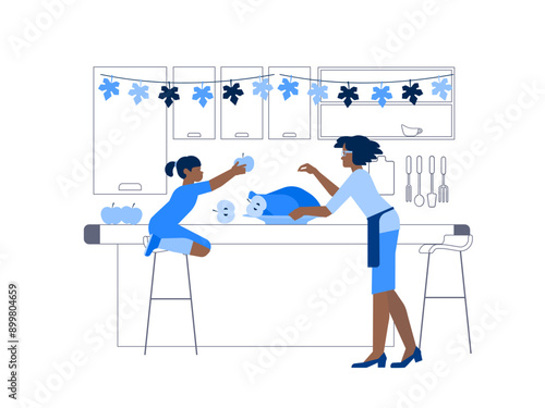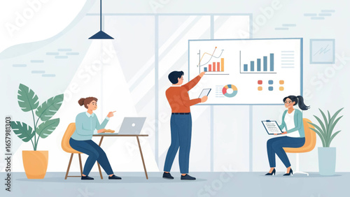 Продавщица помогает покупателю выбрать лампу для интерьера спальни, плоская векторная иллюстрация. Концепция розничного бизнеса мебельного магазина.