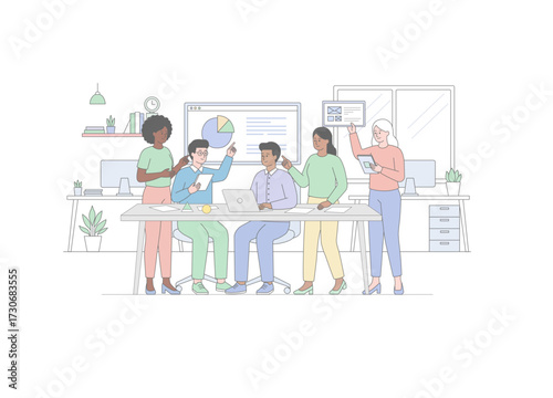 Покупатели в супермаркете, продуктовом магазине, продовольственном магазине, рынке, плоская векторная иллюстрация. Люди выбирают фрукты, овощи, молочные продукты питания, оплачивают покупки. Покупатели делают покупки с тележкой, корзиной
