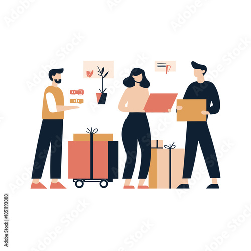 Векторный плакат концепции покупок. Люди в торговом центре.