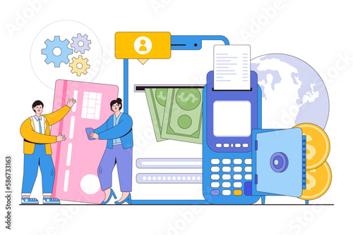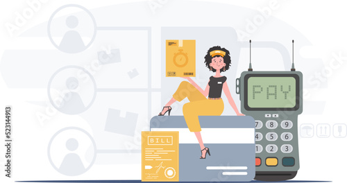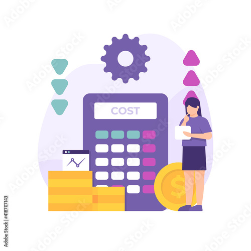 Векторная иллюстрация роста цен в магазинах и изменения инфляции. Увеличение стоимости товаров, рост стоимости розничной корзины на фоне шокированного покупателя, читающего счет
