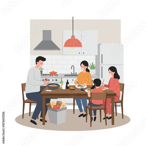 Женщины, делающие покупки, векторная плоская иллюстрация, изолированная на белом фоне. Счастливые девушки с сумками, выбирают и примеряют платья, покупают одежду, совершают покупки в Интернете. Распродажа покупок и скидки.