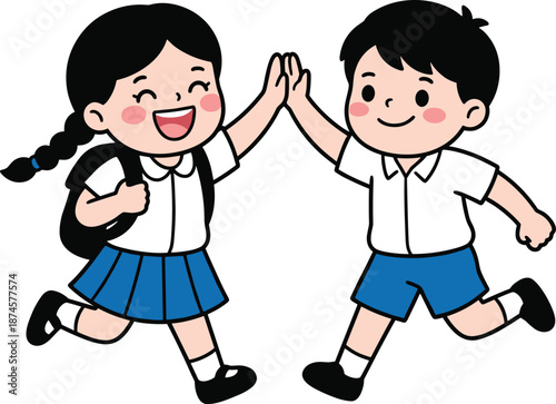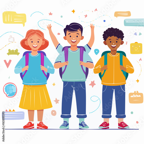 Застенчивый маленький мальчик дарит цветок девочке векторная иллюстрация. Милые забавные дети, изолированные на белом фоне. Персонаж мужского пола, представляющий красивые цветы, поздравляет друга с днем рождения.