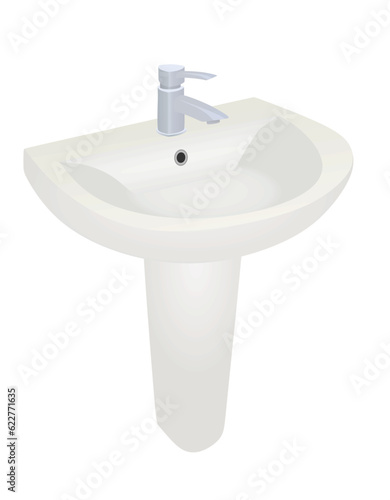 Реалистичная иконка раковины. Вектор раковины для унитаза в ванной комнате, выделенный на белом фоне. Чаша для умывальника с краном, мебель для интерьера туалета