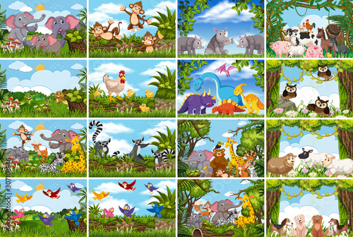 Горнолыжный курорт с лыжниками, канатными дорогами, подъемниками, набор векторных иллюстраций. Зимние каникулы и занятия спортом. Зимний сезон горный пейзаж с альпийским шале. Горные лыжи, сноуборд, скоростной спуск.