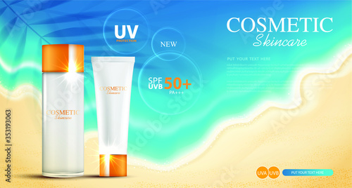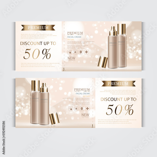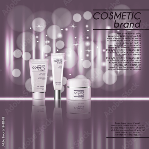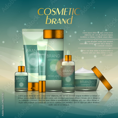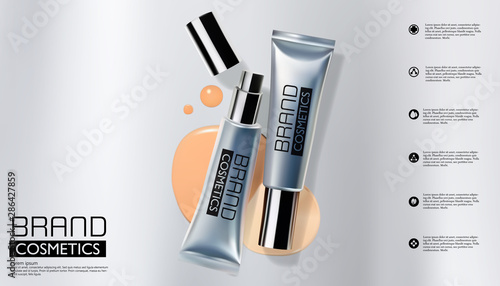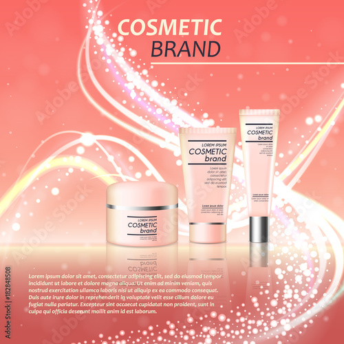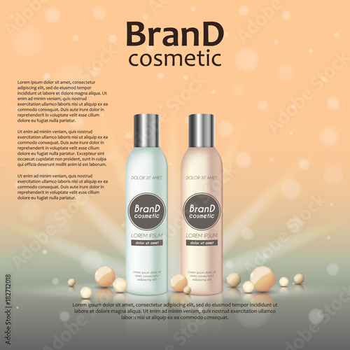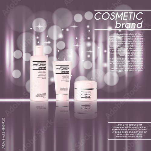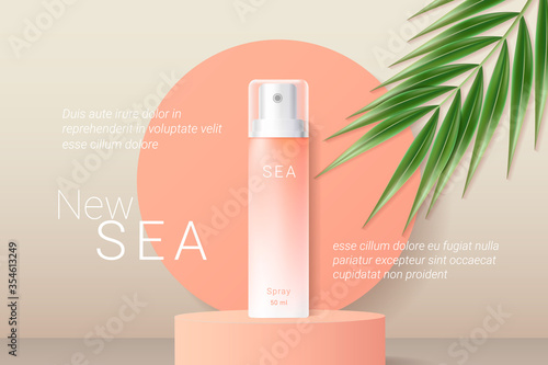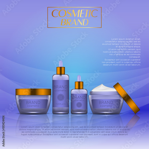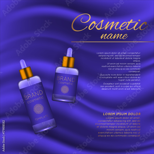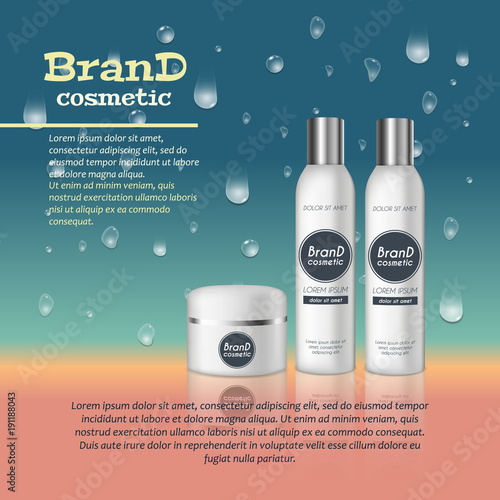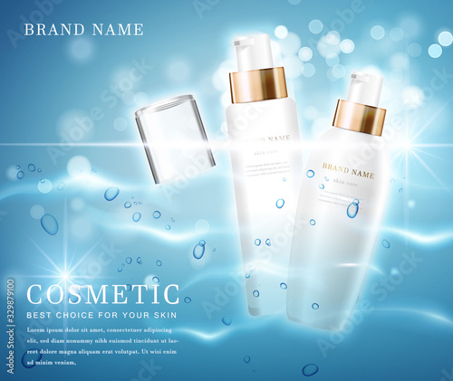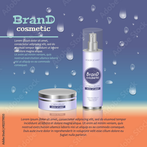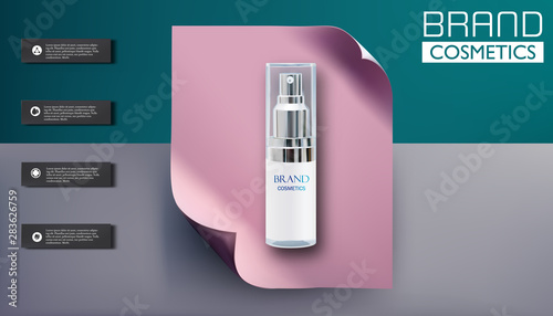 Реклама косметических средств с тоником для кожи. Векторная 3d иллюстрация. Дизайн шаблона флакона крема для кожи.