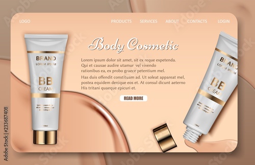 Реклама косметических средств с тоником для кожи. Векторная 3d иллюстрация. Дизайн шаблона флакона крема для кожи. Тональный крем для макияжа лица и тела.