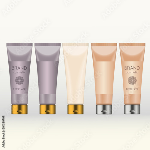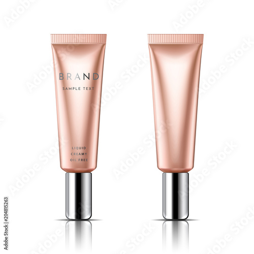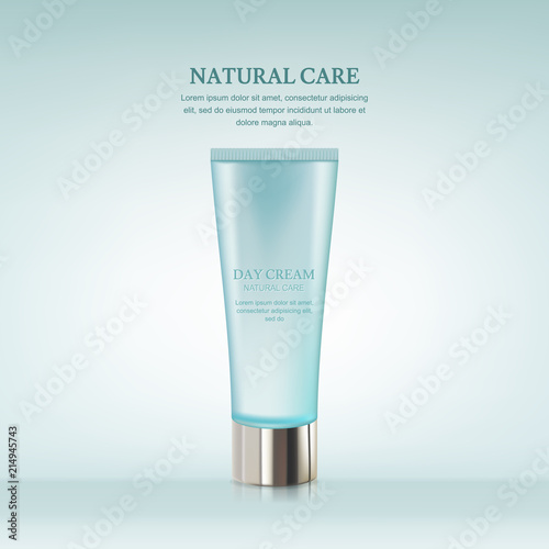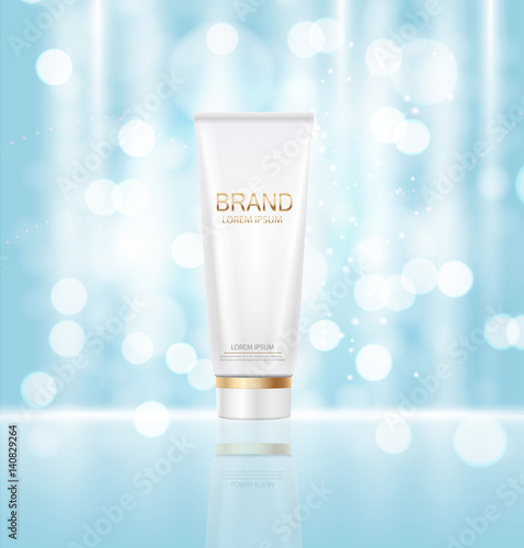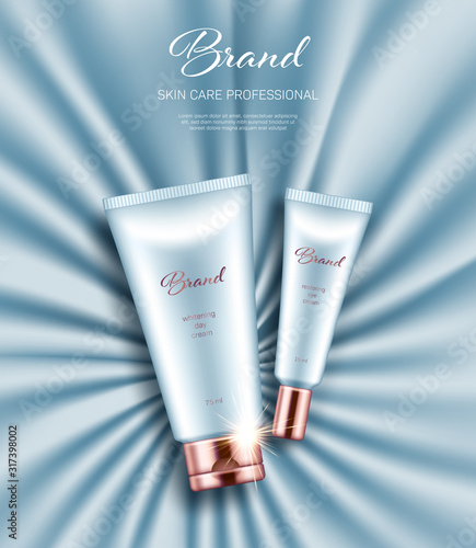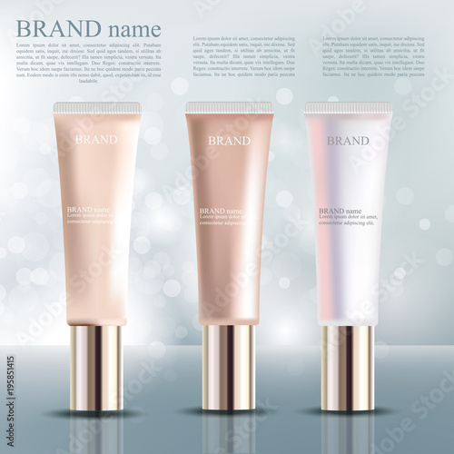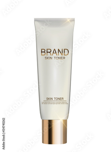 Реклама косметических средств с тоником для кожи. Векторная 3d иллюстрация. Дизайн шаблона флакона крема для кожи. Тональный крем для макияжа лица и тела.
