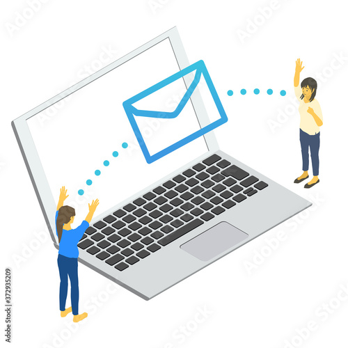 Череп и скрещенные кости в конверте электронной почты на экране ноутбука, плоская векторная изометрическая иллюстрация. Взлом почты, пиратство, компьютерный вирус, вредоносное ПО.