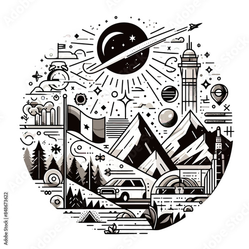 Векторная иллюстрация человеческого черепа в шляпе и в наушниках, слушающего музыку. Музыка черепа вид сбоку винтажный гранжевый дизайн для футболки или принта.