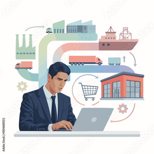 Умная ферма крупного рогатого скота, плоская векторная иллюстрация. Автоматизированная молочная ферма. Автоматическая машина для доения коров. Интернет вещей, беспроводной дистанционный контроль качества, современные технологии "умного земледелия" в сельском хозяйстве.