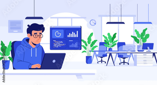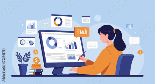 Умная птицеферма, плоская векторная иллюстрация. Интернет вещей, автоматизация птицефабрик, беспроводное дистанционное управление, современные технологии интеллектуального земледелия в сельском хозяйстве.