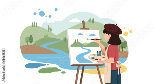 Умный дизайн целевой страницы ребенка, набор шаблонов баннеров веб-сайта, плоская векторная иллюстрация. Милые девушки, молодой подводный ныряльщик и художник. Развитие одаренных детей. Подводное плавание для детей.