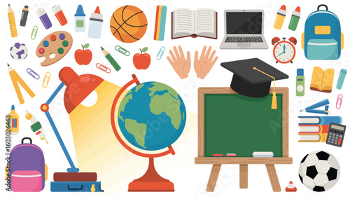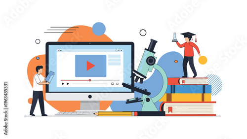 Огромная цифровая классная доска и микросимволы учеников и учителя, векторная иллюстрация. Школьный урок, перевернутый класс, концепция интеллектуальных образовательных технологий.