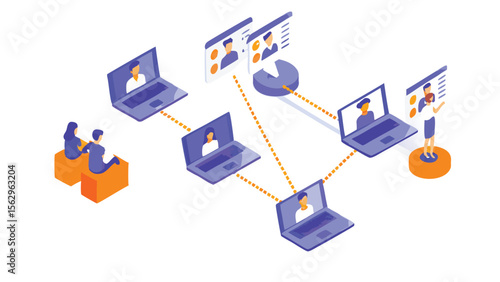 Блок-схема умной органической фермы, плоская векторная изометрическая иллюстрация. Фермер, сельскохозяйственные роботы, беспилотник, теплица, ветряные мельницы, панели солнечной энергии. Автоматизация фермы. Оптимизация процесса производства пищевых продуктов.