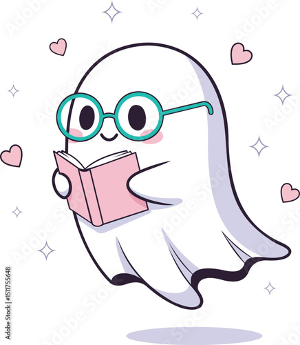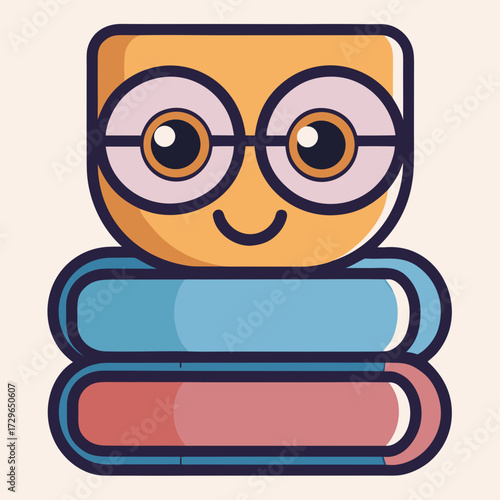 Вектор "Умный хомяк". Симпатичный персонаж-животное в очках, держащий в руках книгу, иллюстрация мультяшного значка, изолированная на белом фоне