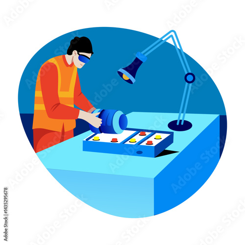 Домашние роботы, плоская векторная изометрическая иллюстрация. Домашние роботы, помогающие людям со стиркой, глажкой одежды. Умный бытовой робот-пылесос, убирающий дом. Искусственный интеллект.