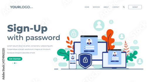Шаблон целевой страницы "Умная кухонная техника". Векторная концепция дизайна в плоском стиле для разработки веб-сайтов и мобильных сайтов. Интернет вещей, производство электронного оборудования и бытовой техники.