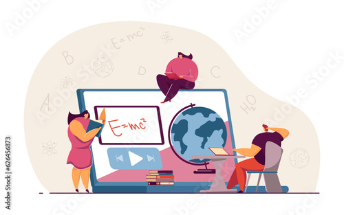 Векторная иллюстрация больших умных часов с приложением для отслеживания активности и крошечных людей, занимающихся спортом. Фитнес-трекер беговой дистанции с пульсометром для похудения и концепции здоровья.