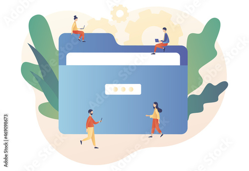 Векторная иллюстрация большого смартфона с приложением для отслеживания фитнес-активности для занятий спортом, бега и крошечных людей, занимающихся спортом. Концепция умной спортивной технологии для веб-баннера, страницы веб-сайта и т.д.