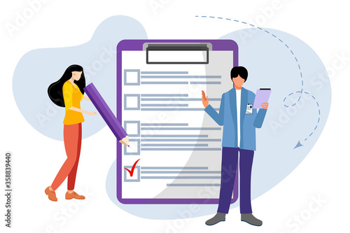 Плоская векторная иллюстрация концепции онлайн-уплаты налогов. Смартфон, персонажи-налогоплательщики, совершающие платежи. Мобильное приложение для заполнения налоговых форм.