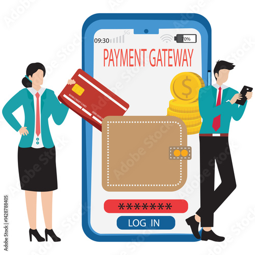 Продажа на онлайн-аукционе, плоская векторная иллюстрация. Смартфон с аукционистом, держащим в руках молоток и вазу. Аукцион и интернет-торги с мобильного телефона.