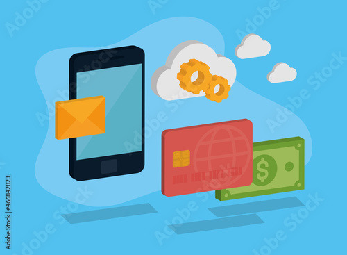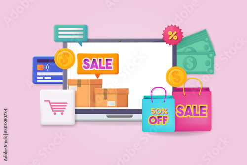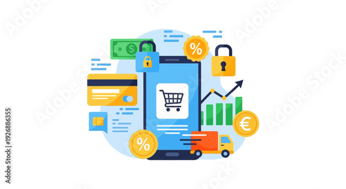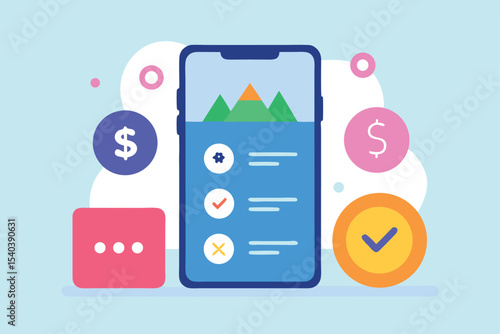 Смартфон с графиком, знаком доллара на экране, банковской картой, увеличивающейся стрелкой, деньгами, 3d векторной иллюстрацией. Финансовый рост, финансовый доход, сбережения денег, инвестиции.