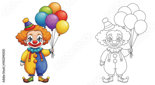 Улыбающийся персонаж мультфильма "клоун". Векторная иллюстрация в стиле комического поп-арта.